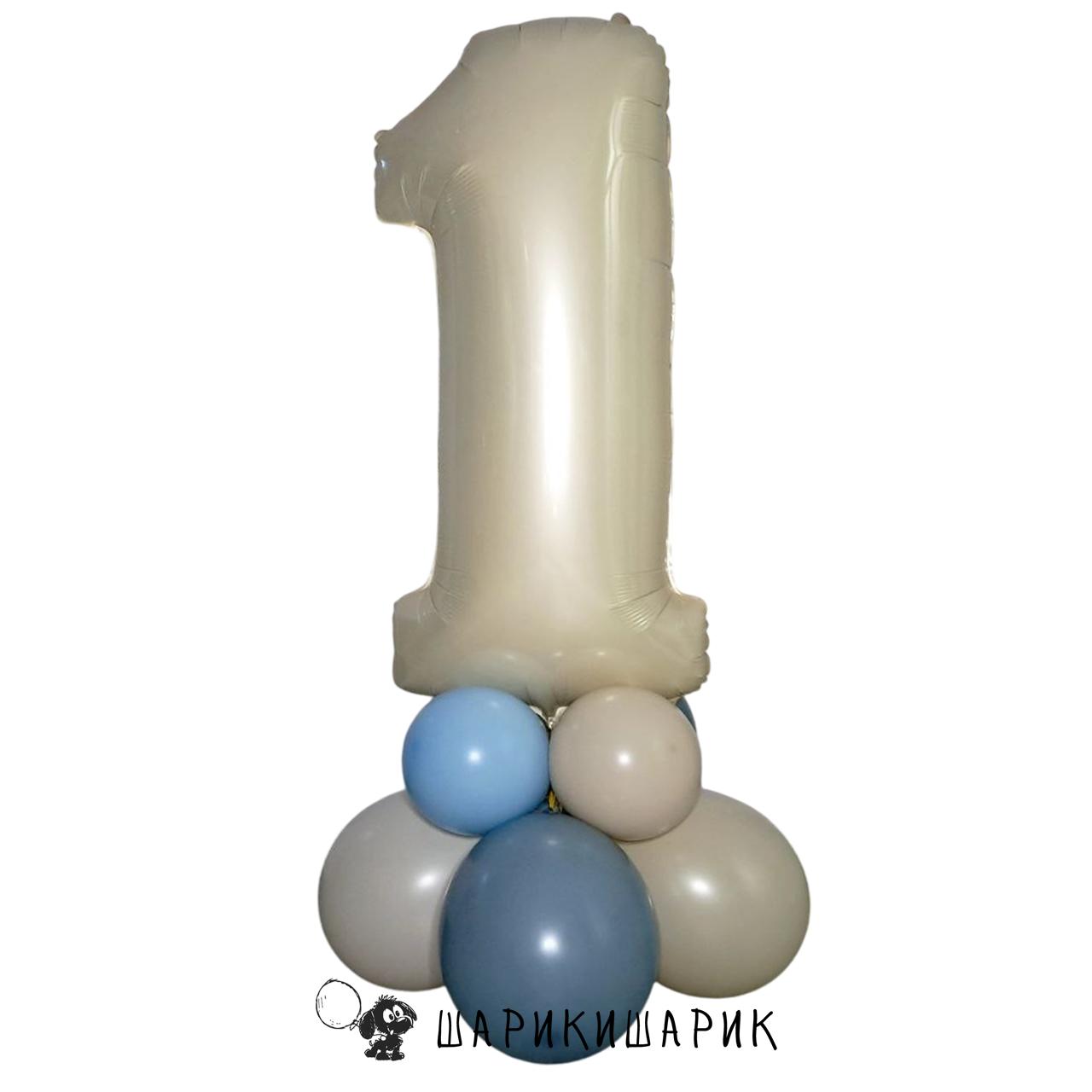 Фольгированная цифра на подушке из шаров "Бежево-голубой"