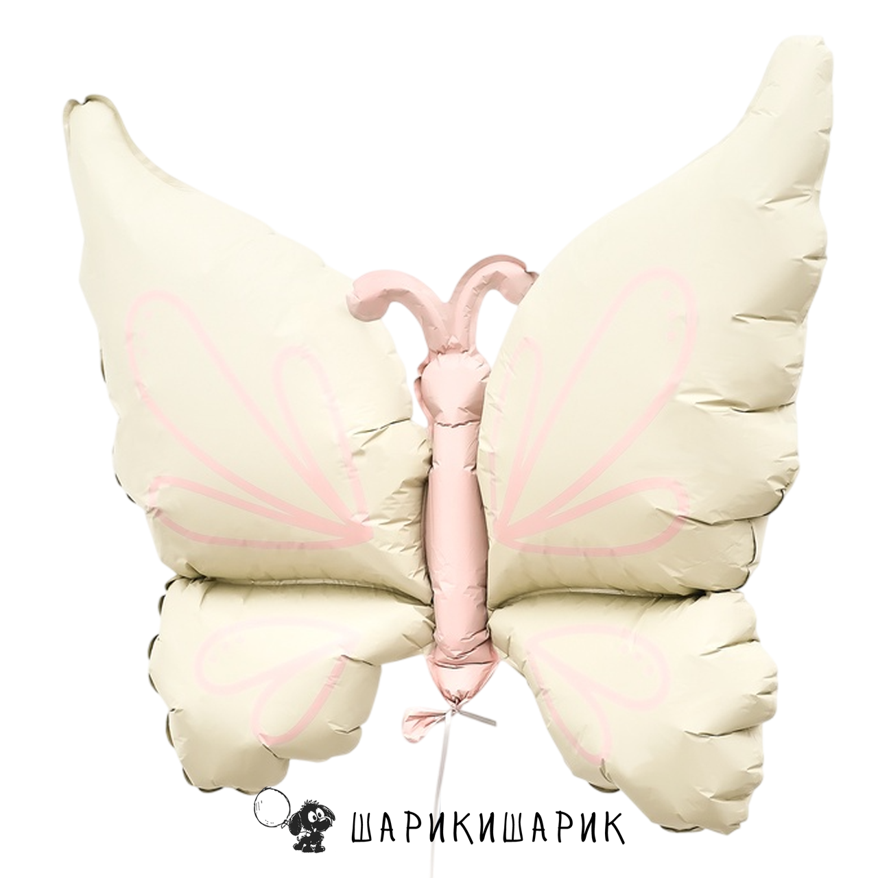 Фольгированная фигура "Бабочка", нежная бежевая с гелием