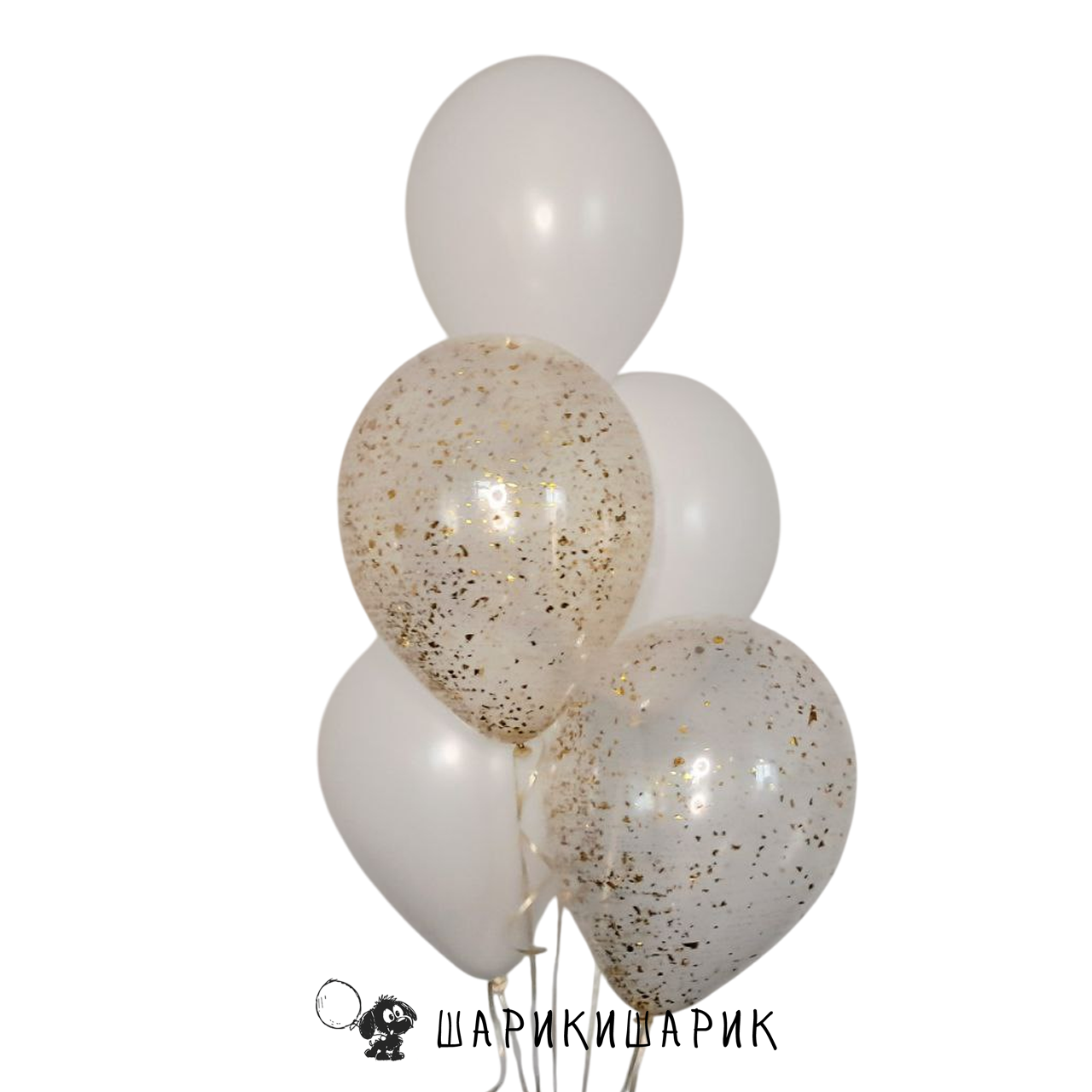 Фонтан из пяти шаров "Белый с золотыми блёстками"