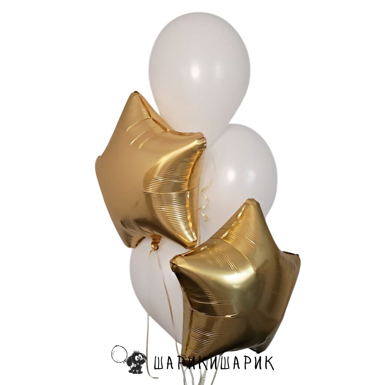 Фонтан из пяти шаров с двумя звёздами "Белое золото"