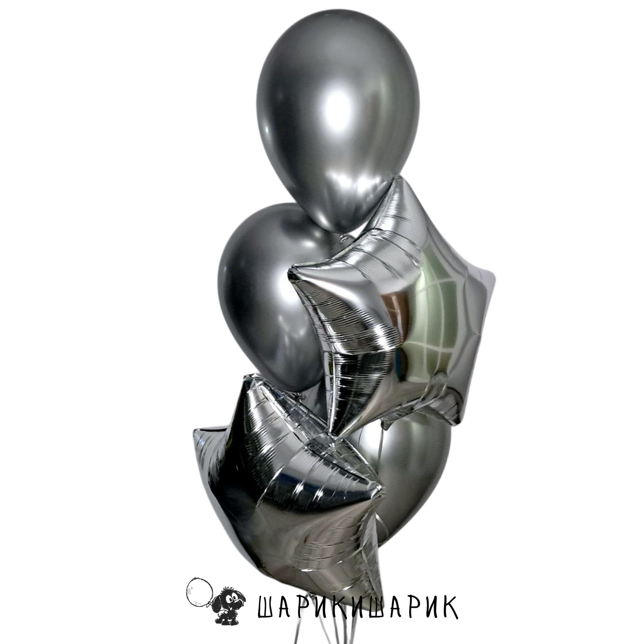 Фонтан из пяти шаров с двумя звёздами "Серебро"