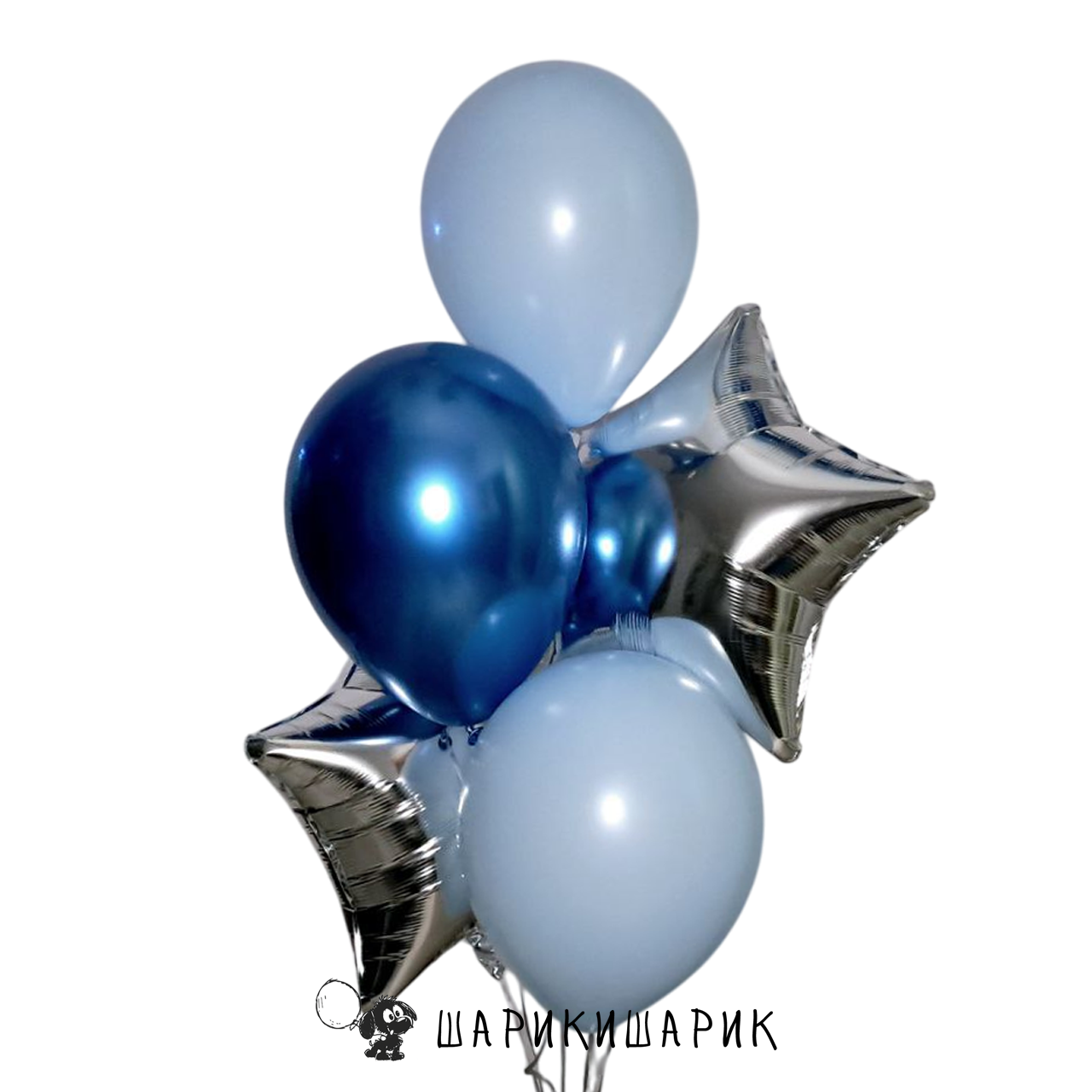 Фонтан из пяти шаров с двумя звёздами "Серебряно-голубая синева"