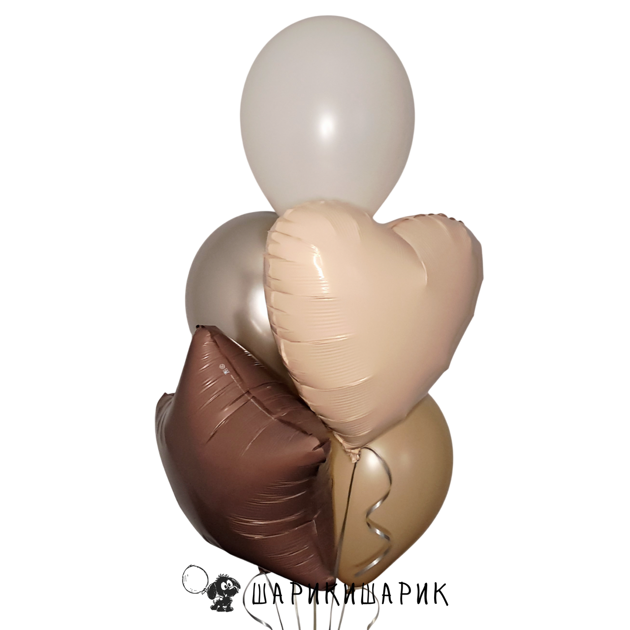 Фонтан из пяти шаров с сердцем и звездой "Кремово-шоколадный"