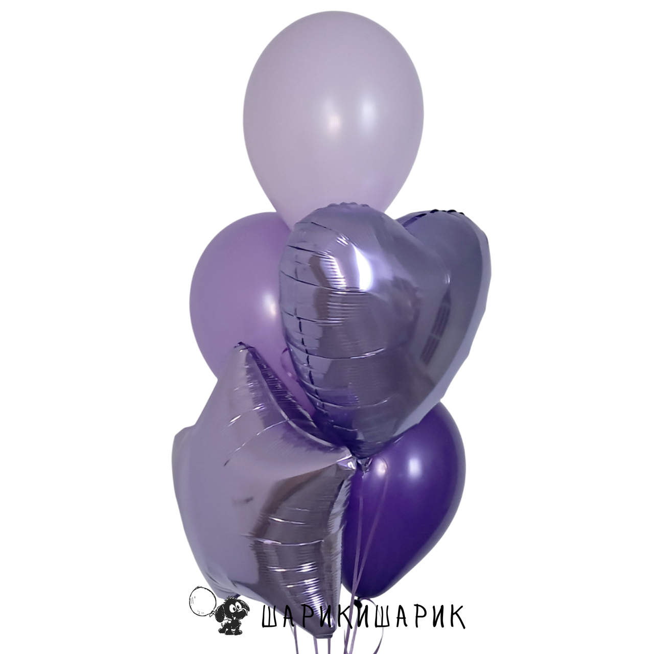 Фонтан из пяти шаров с сердцем и звездой "Сирень"