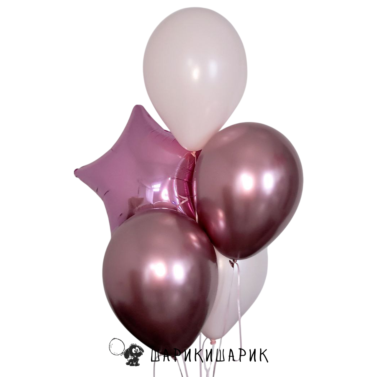 Фонтан из пяти шаров со звездой "Розовый"