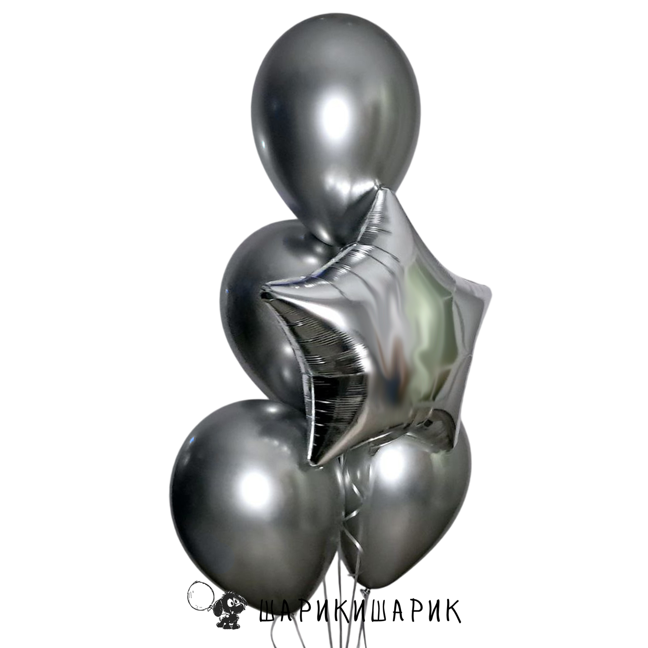 Фонтан из пяти шаров со звездой "Серебро"