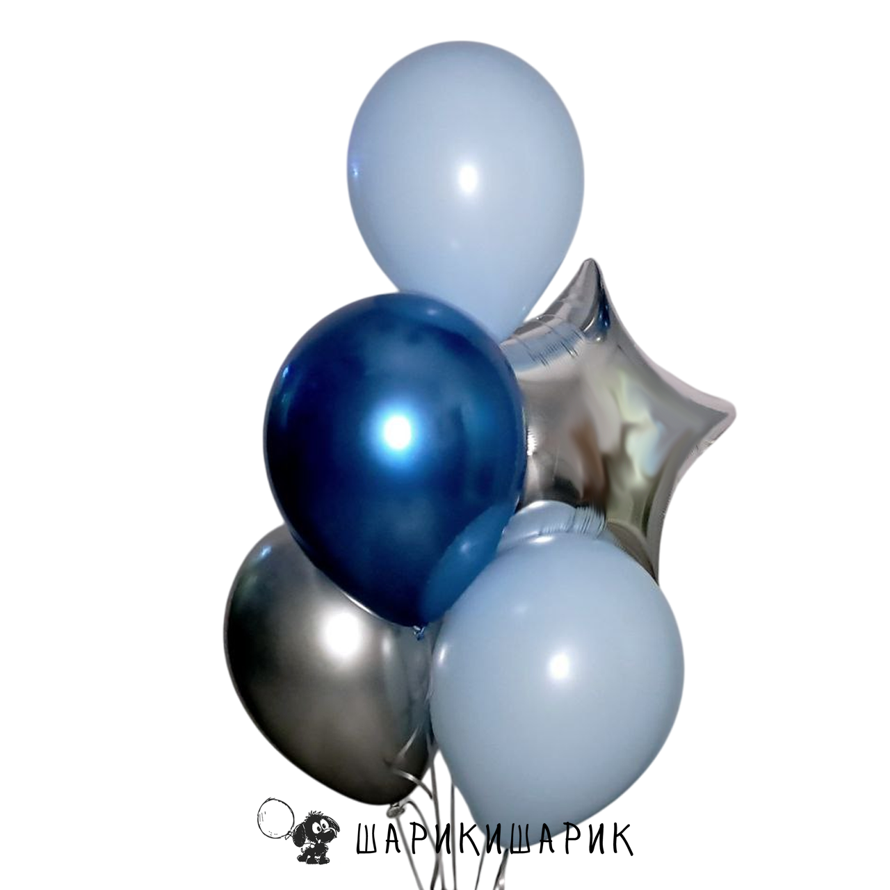 Фонтан из пяти шаров со звездой "Серебряно-голубая синева"
