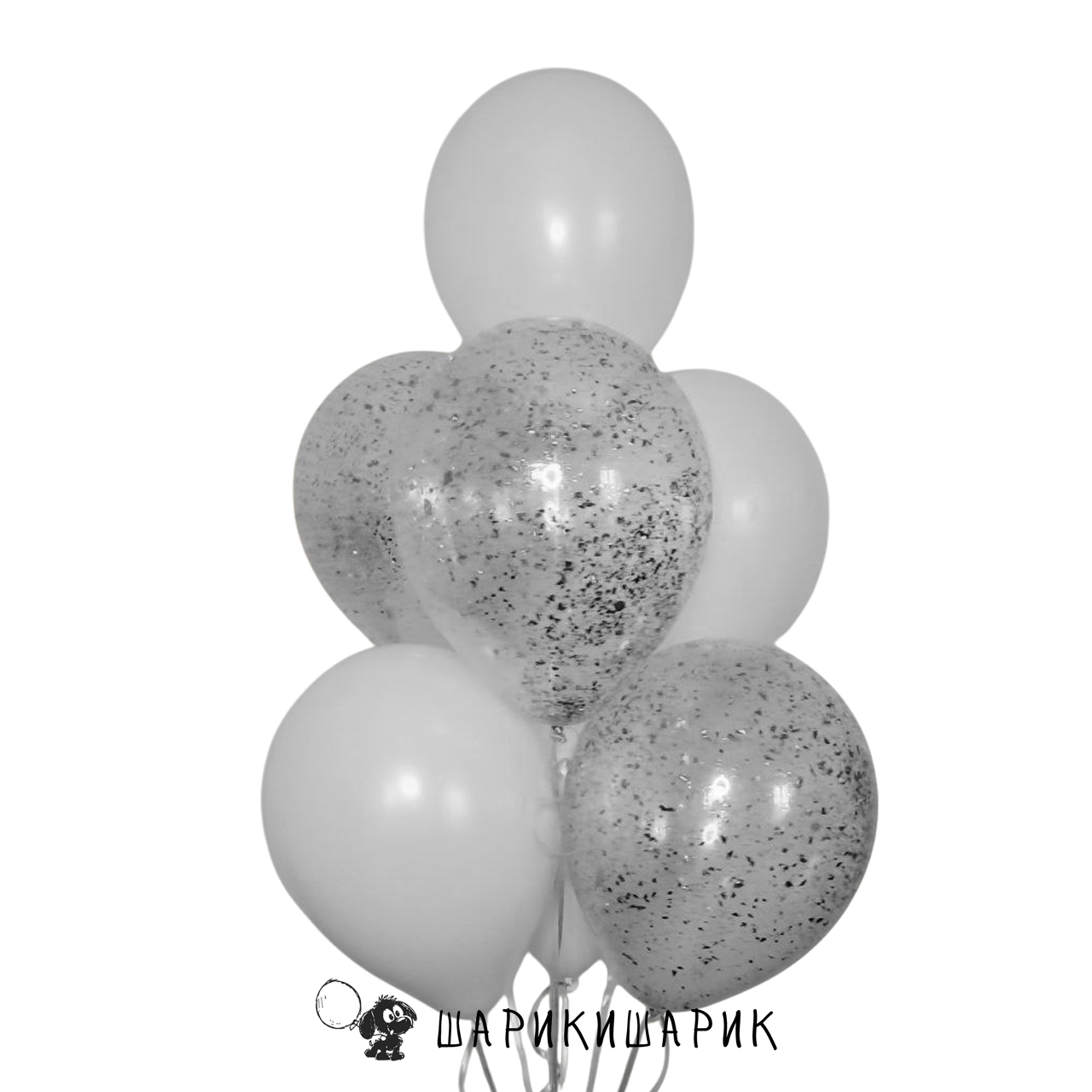 Фонтан из семи шаров "Белый с серебряными блёстками"