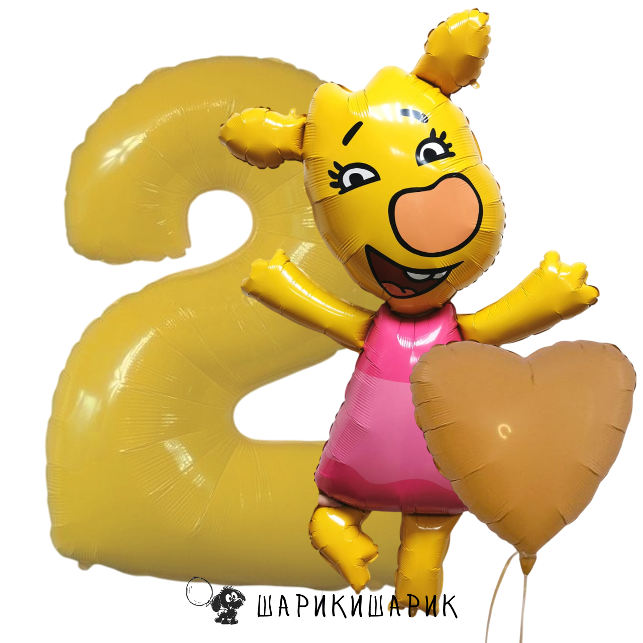 Набор из цифры, сердца 18" и фигуры "Оранжевая корова. Зоя"