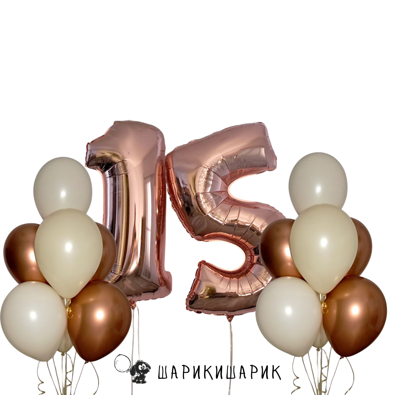 Набор из десяти шаров и двух цифр с гелием "Бронзовый песок"