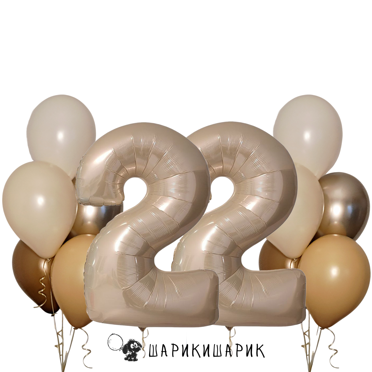Набор из десяти шаров и двух красных цифр с гелием "Кремово-шоколадный"