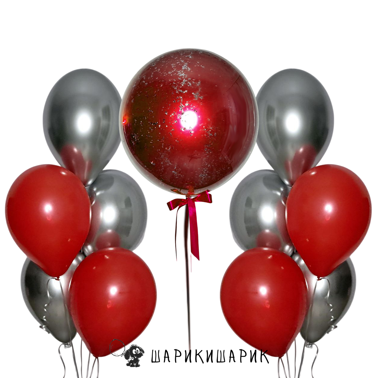 Набор из десяти шаров и шара Bubble (бабл) 18" "Красное серебро"