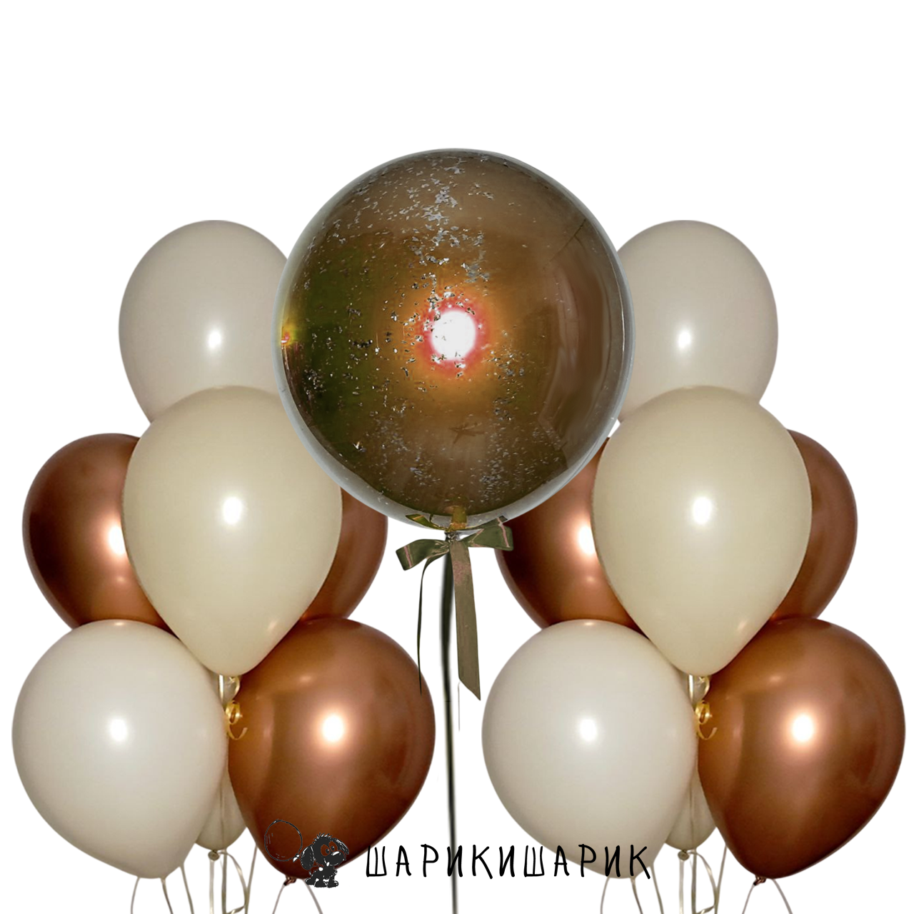 Набор из десяти шаров и шара Bubble (бабл) с конфетти 18" с гелием "Бронзовый песок"