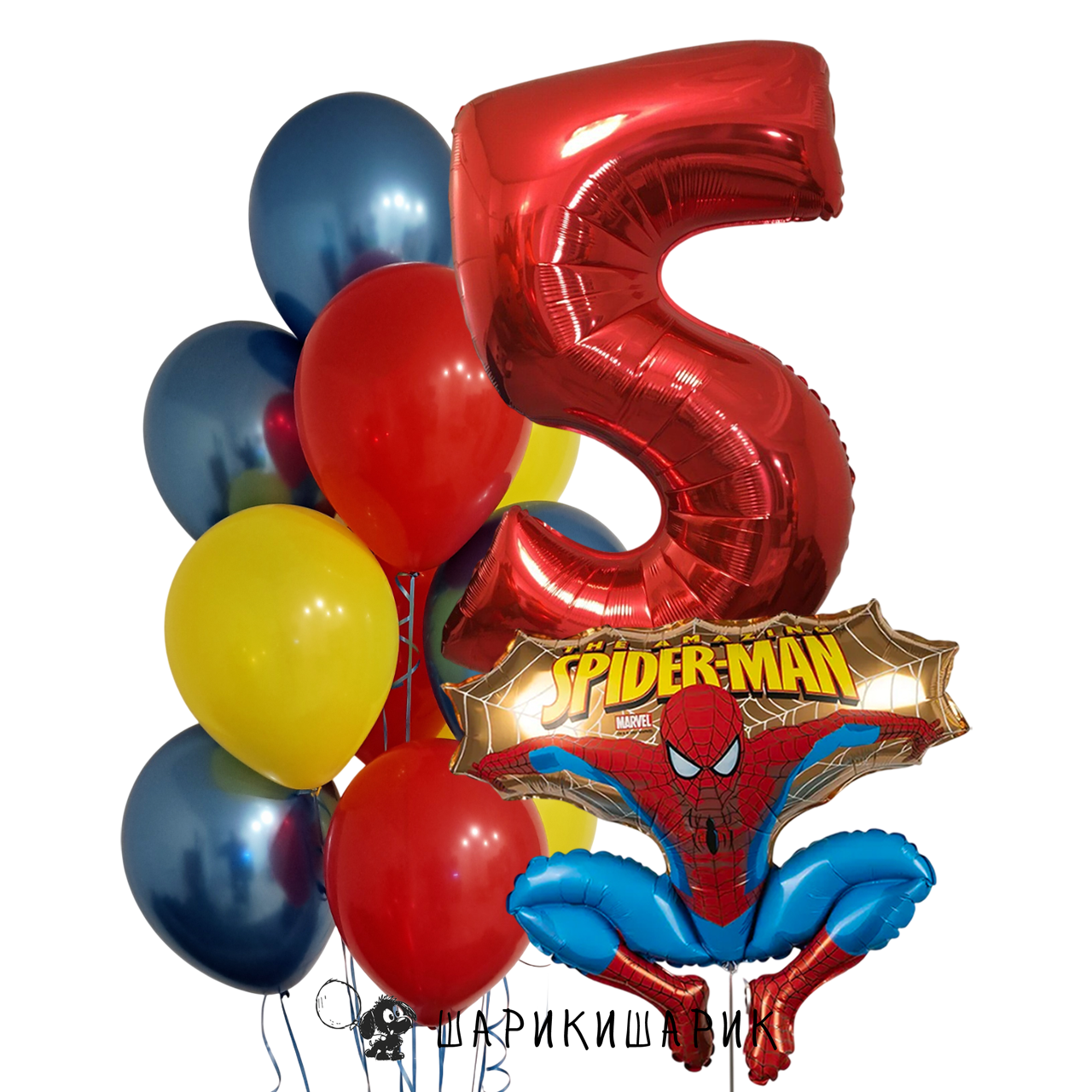 Набор из десяти шаров "Яркое трио", красной цифры и фигуры "Человек-паук"