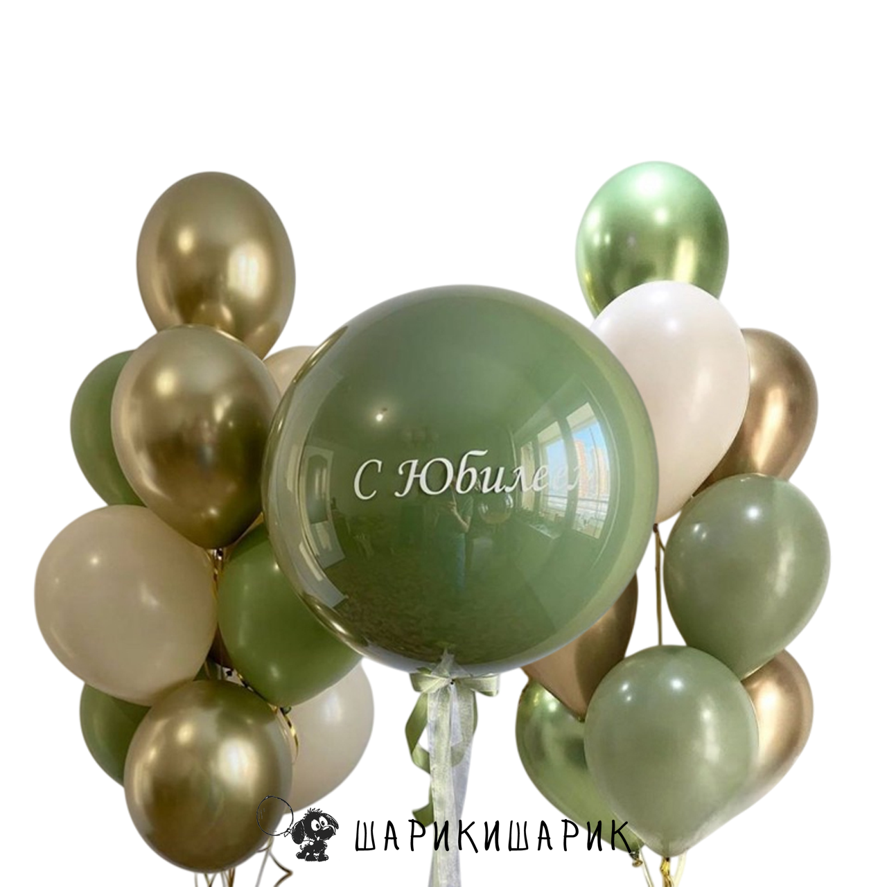 Набор из двух больших фонтанов и шара Bubble 24" "С юбилеем", золотой эвкалипт