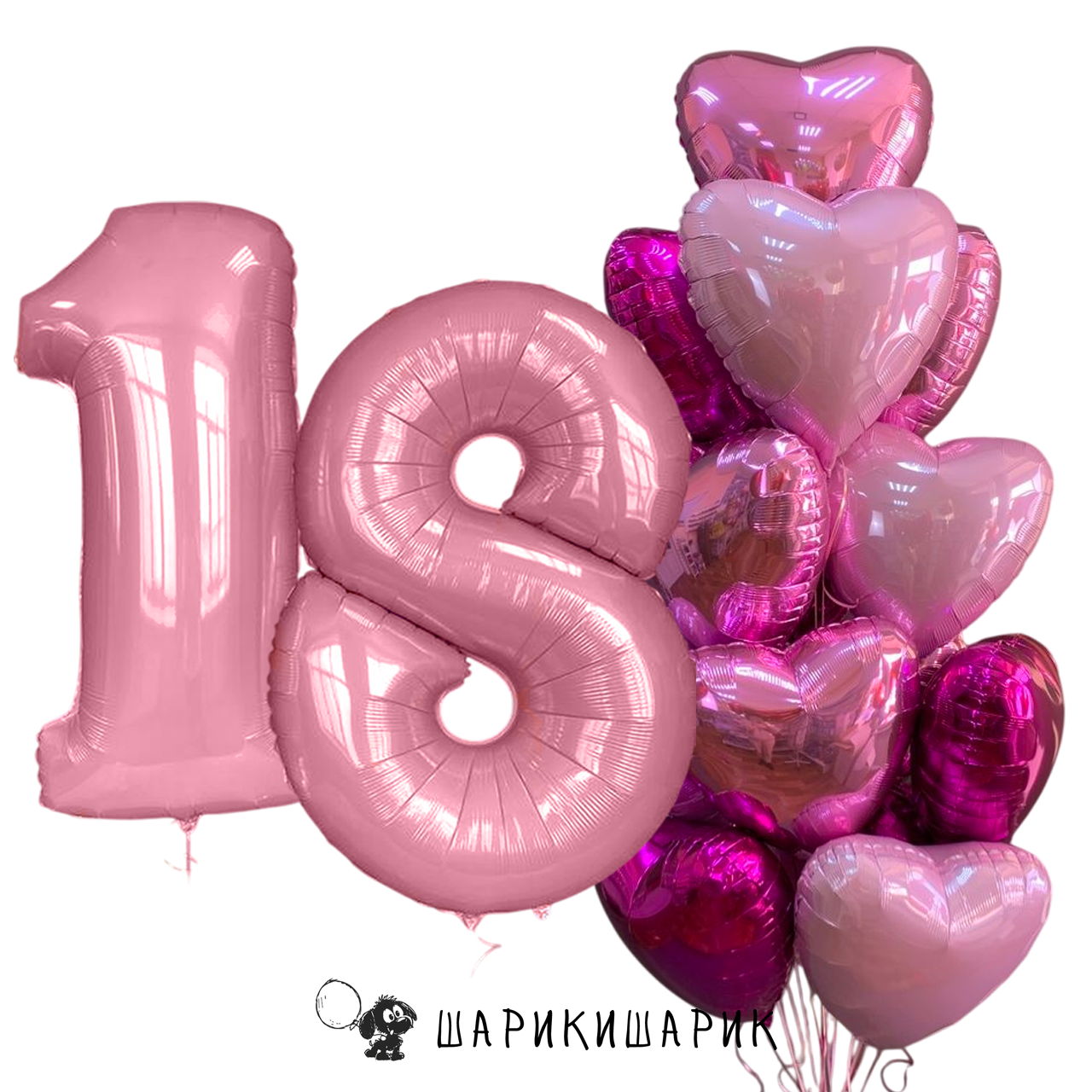 Набор из двух цифр и фольгированных сердец "Розовое ассорти"