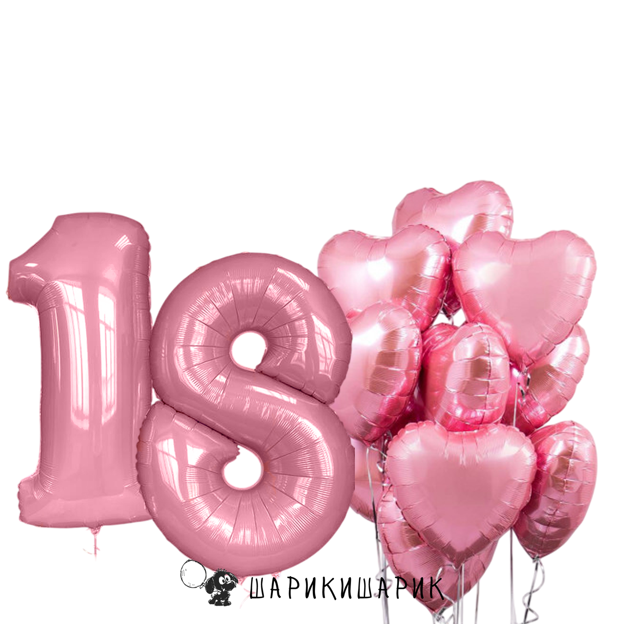 Набор из двух цифр и фольгированных сердец "Розовый"