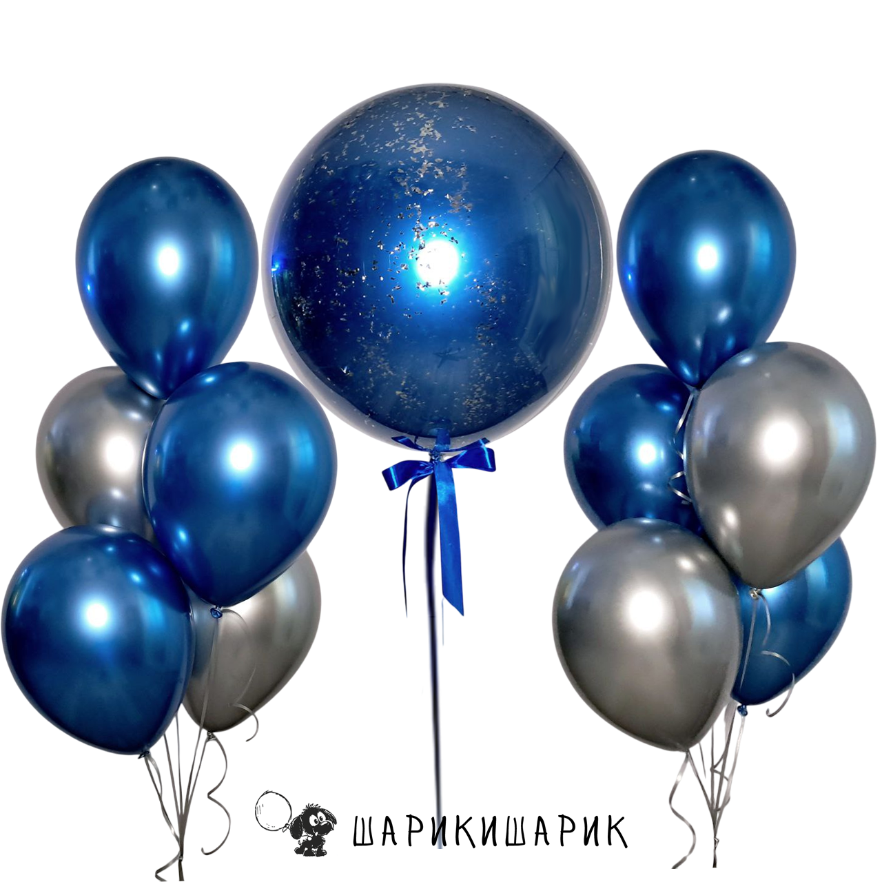 Набор из двух маленьких фонтанов и большого шара с конфетти "Серебряно-синий"