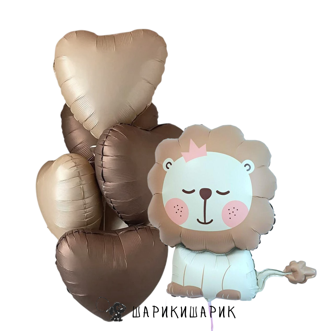 Набор из фигуры львёнка и фольгированных сердец "Кремово-шоколадный"