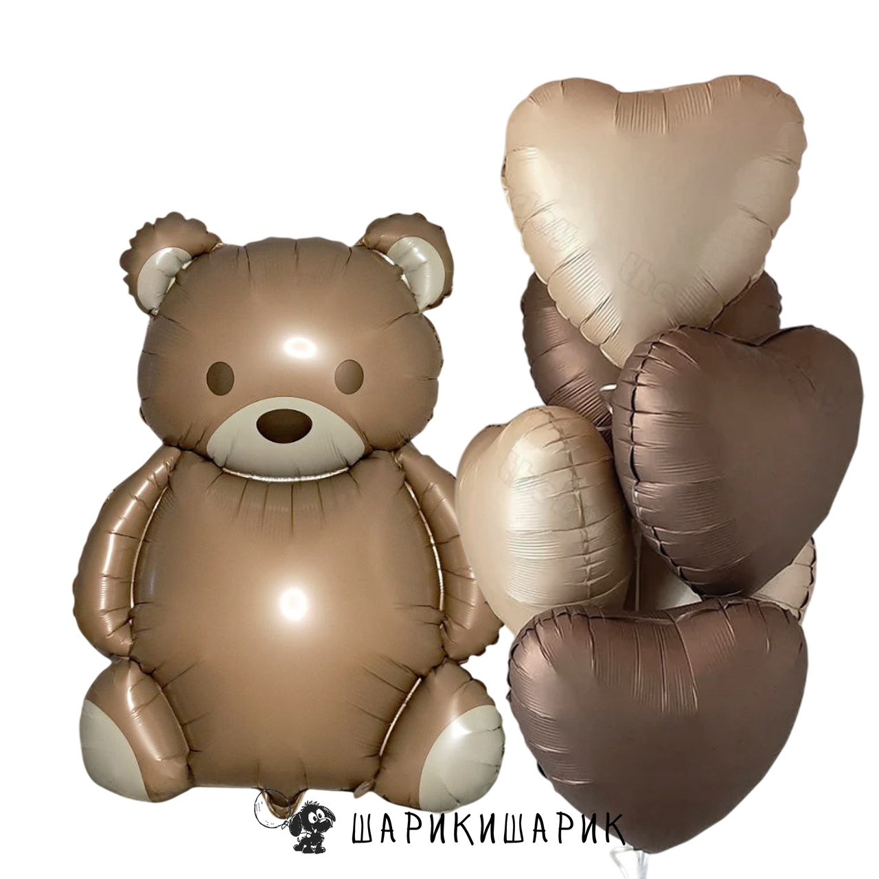 Набор из фигуры медведя и фольгированных сердец "Кремово-шоколадный"
