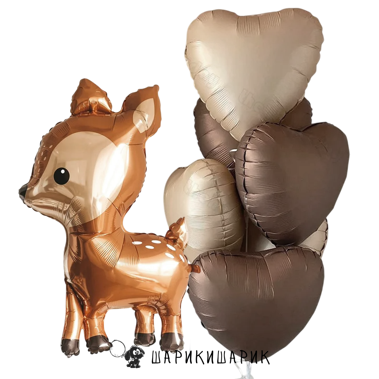 Набор из фигуры оленёнка и фольгированных сердец "Кремово-шоколадный"