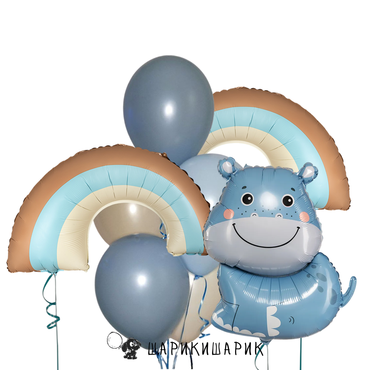 Набор из малого фонтана, бегемота и двух радуг "Бежево-голубой"