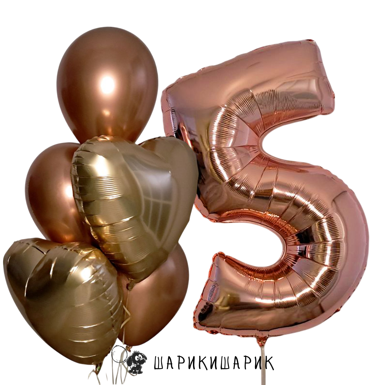 Набор из малого фонтана с двумя сердцами и цифры с гелием "Бронза"