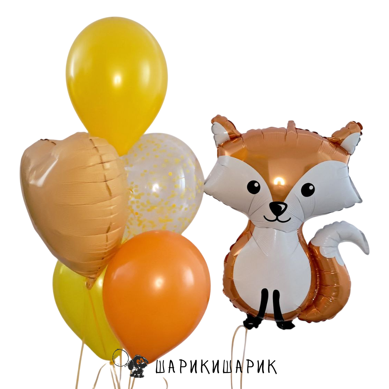 Набор из малого фонтана с конфетти и сердцем и лисы с гелием "Рыжик"