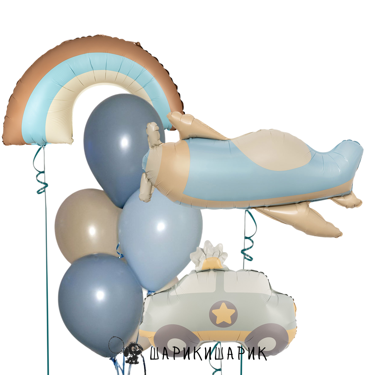 Набор из малого фонтана, самолёта, машинки и радуги "Бежево-голубой"