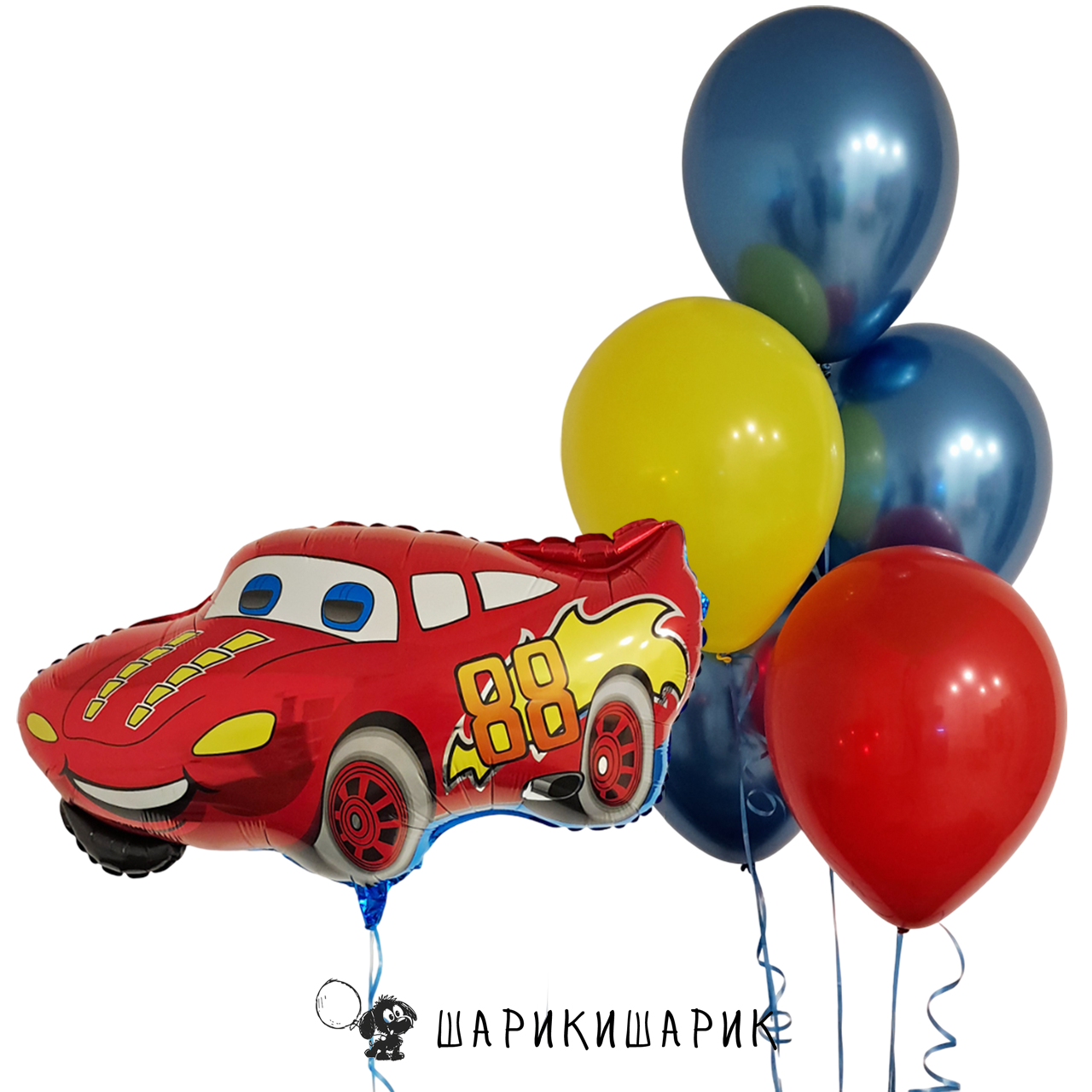 Набор из пяти шаров ассорти "Яркое трио" и фигуры "Красная машинка"