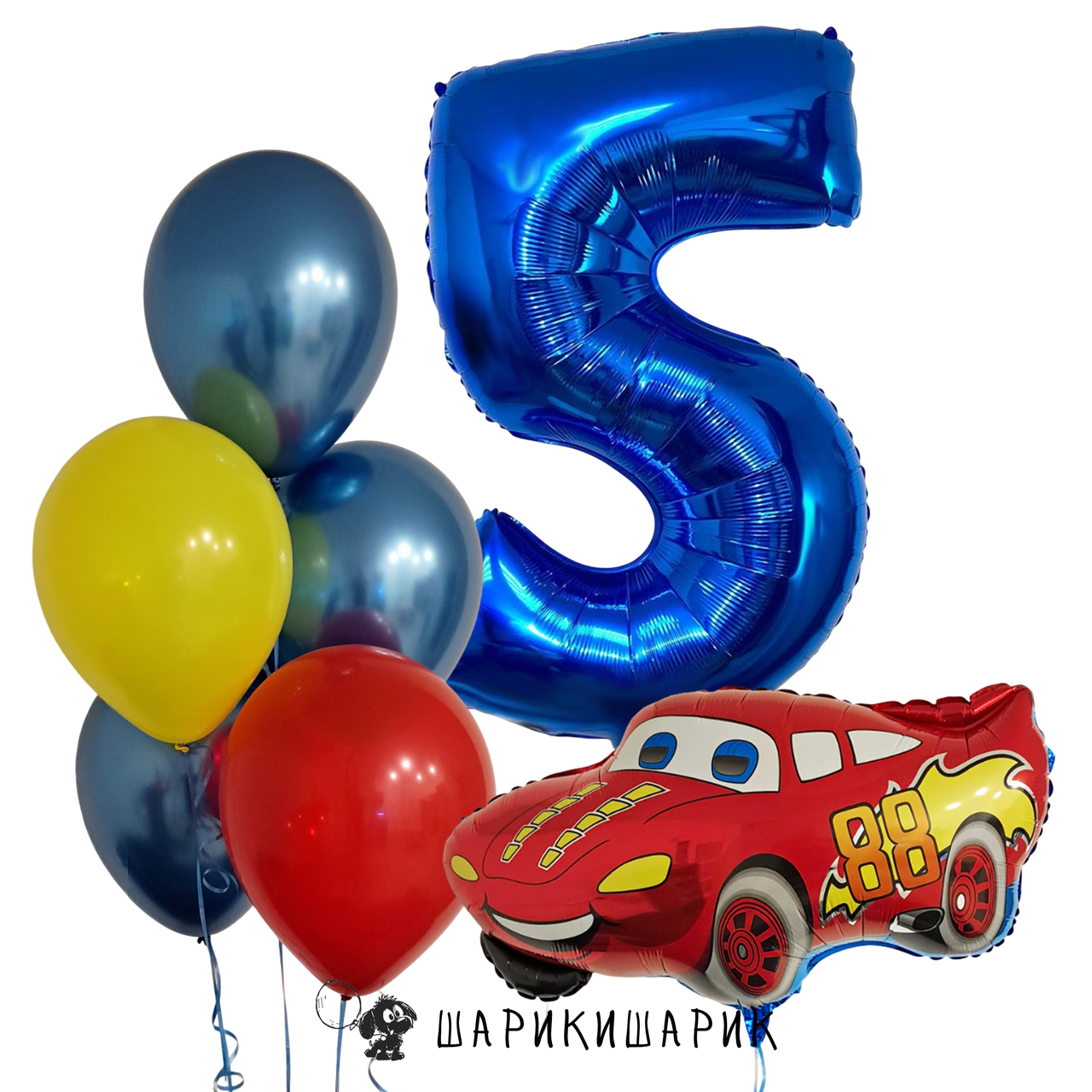 Набор из пяти шаров ассорти "Яркое трио", синей цифры и фигуры "Красная машинка"