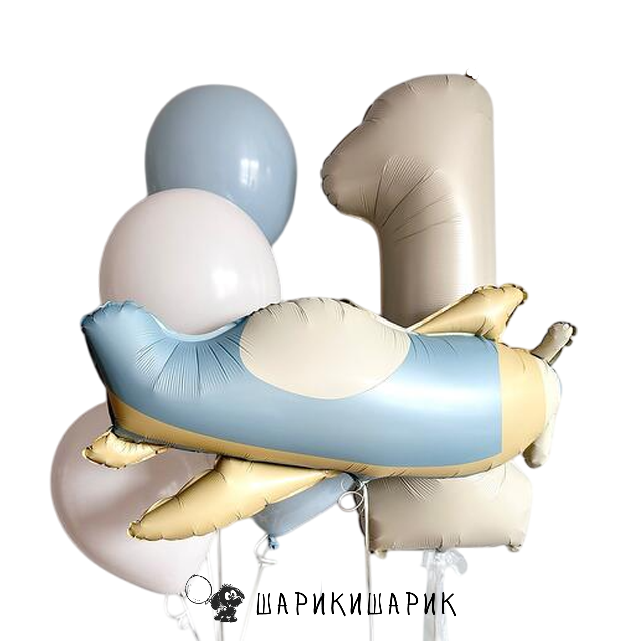 Набор из пяти шаров, цифры и фигуры "Самолёт" "Бежево-голубой"