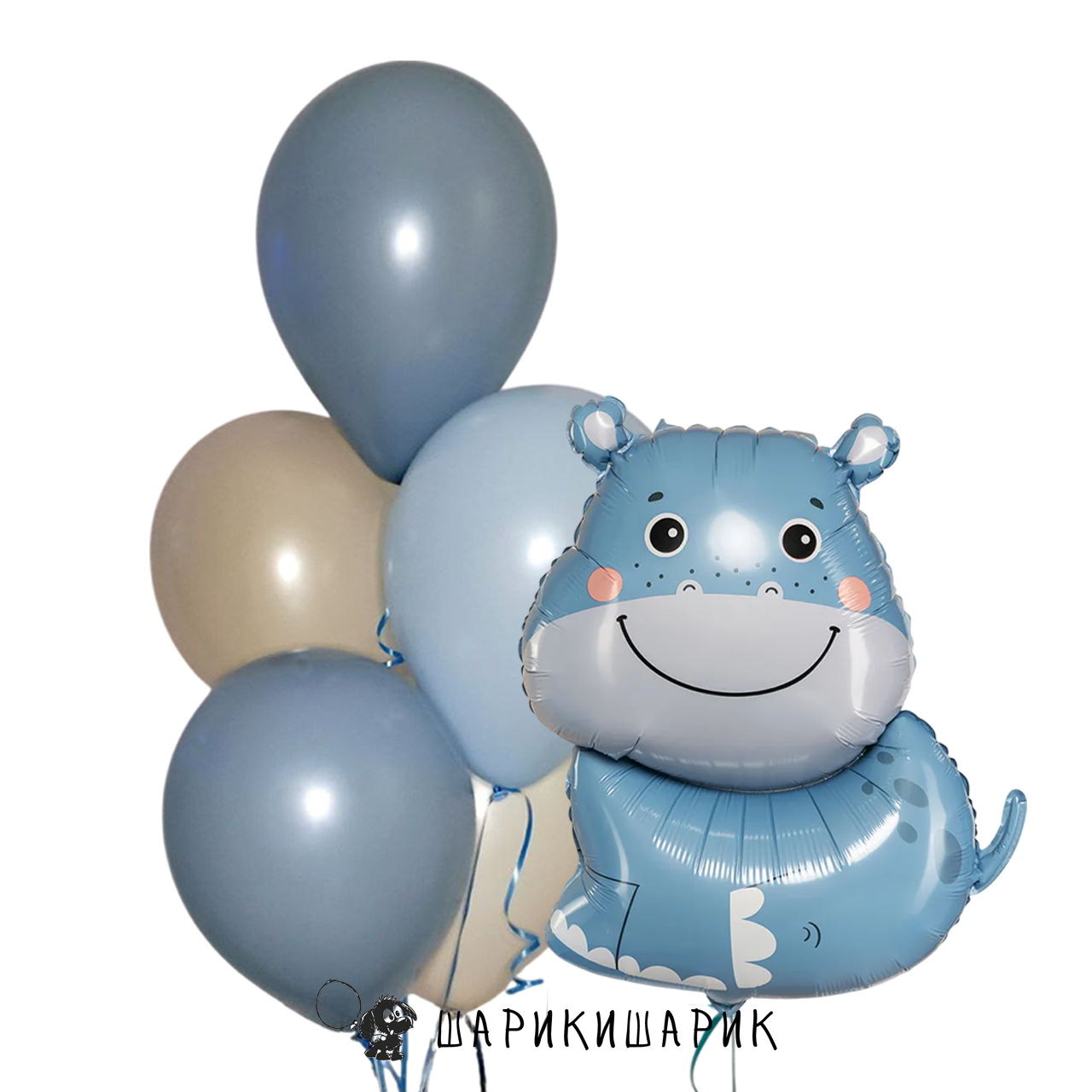 Набор из пяти шаров и бегемота "Бежево-голубой"