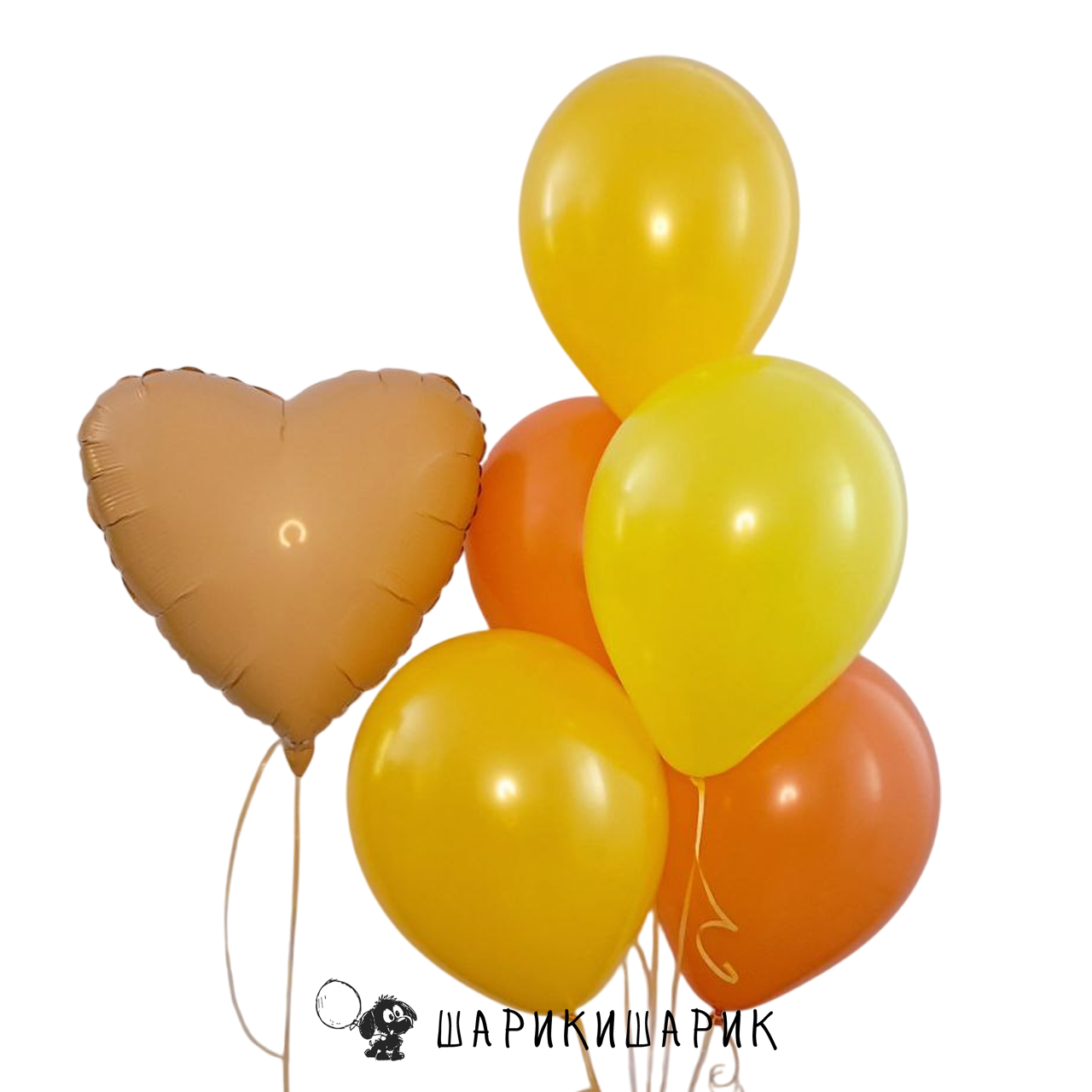 Набор из пяти шаров и сердца 18" с гелием "Рыжик"