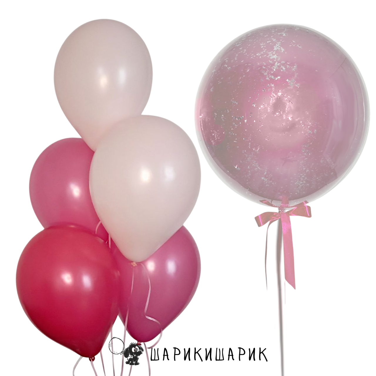 Набор из пяти шаров и шара Bubble (бабл) 18" "Розовый градиент"