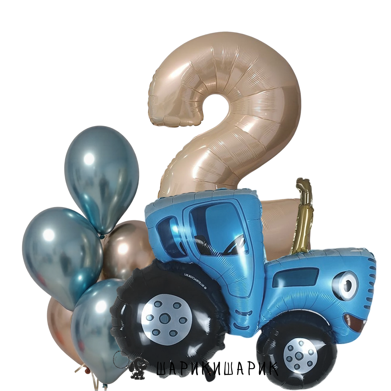 Набор из пяти шаров с цифрой "Кремово-голубой" и фигурой "Синий трактор" 42" с гелием