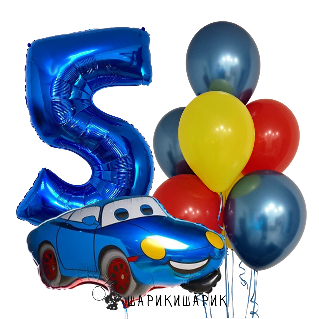 Набор из семи шаров ассорти "Яркое трио", синей цифры и фигуры "Синяя машинка"