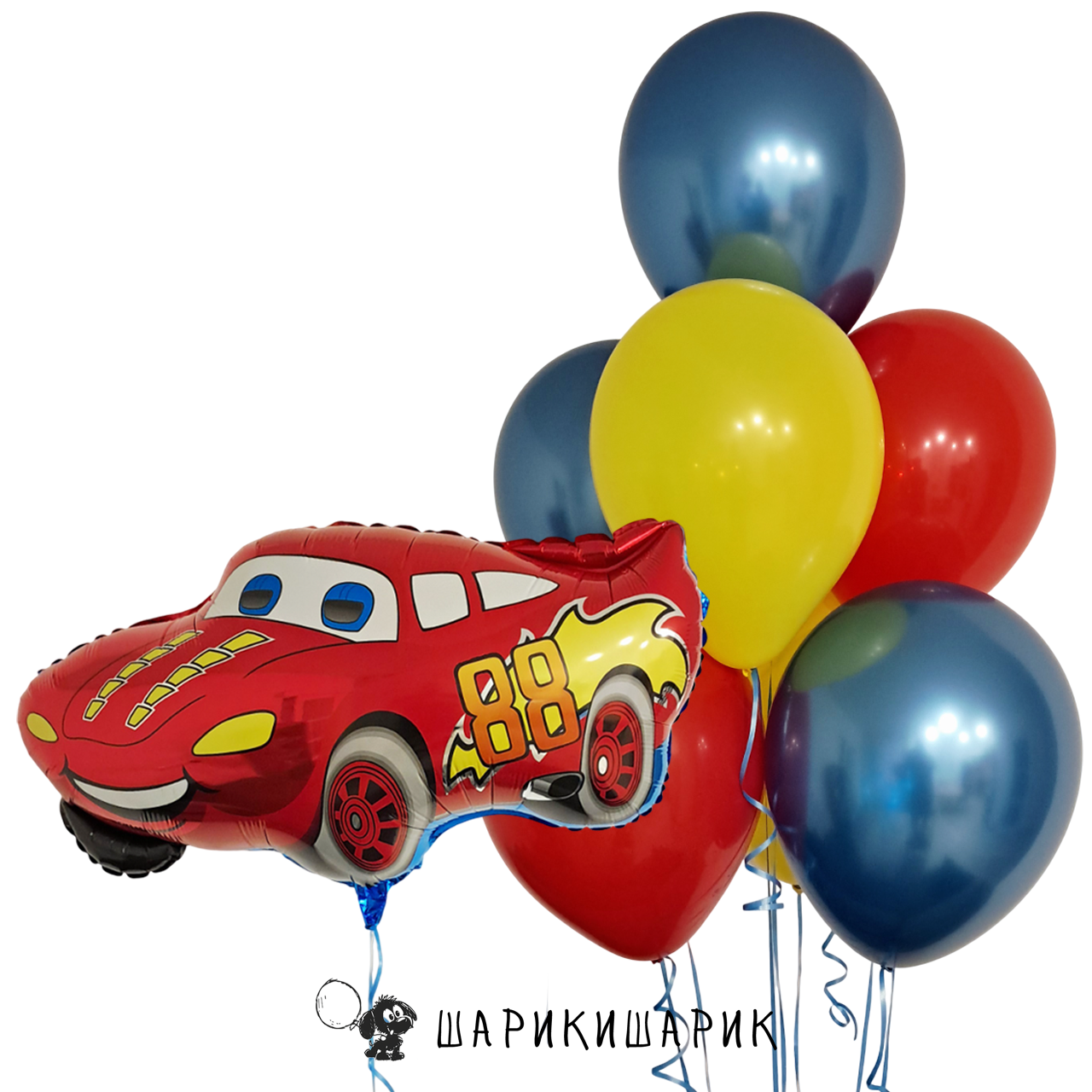 Набор из семи шаров ассорти "Яркое трио" и фигуры "Красная машинка"