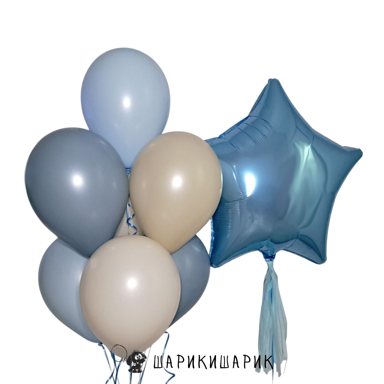 Набор из семи шаров и большой звезды "Бежево-голубой"