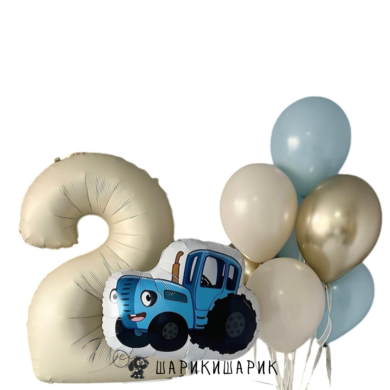 Набор из семи шаров "Песочный голубой", цифры и фигуры "Синий трактор" 24" с гелием
