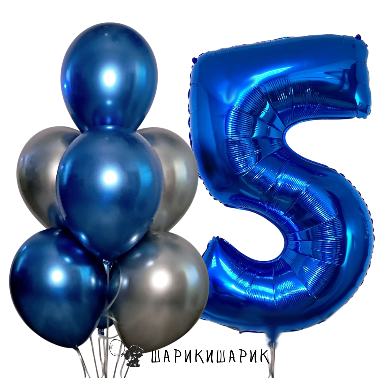 Набор из семи шаров с цифрой "Серебряно-синий"