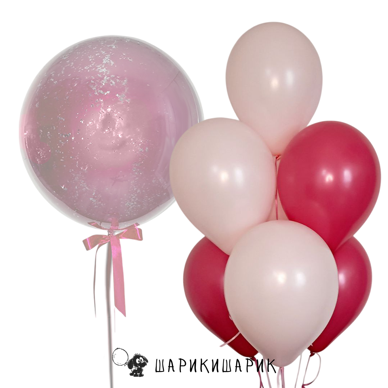 Набор из среднего фонтана и шара Bubble 18" с конфетти "Нежная малина"