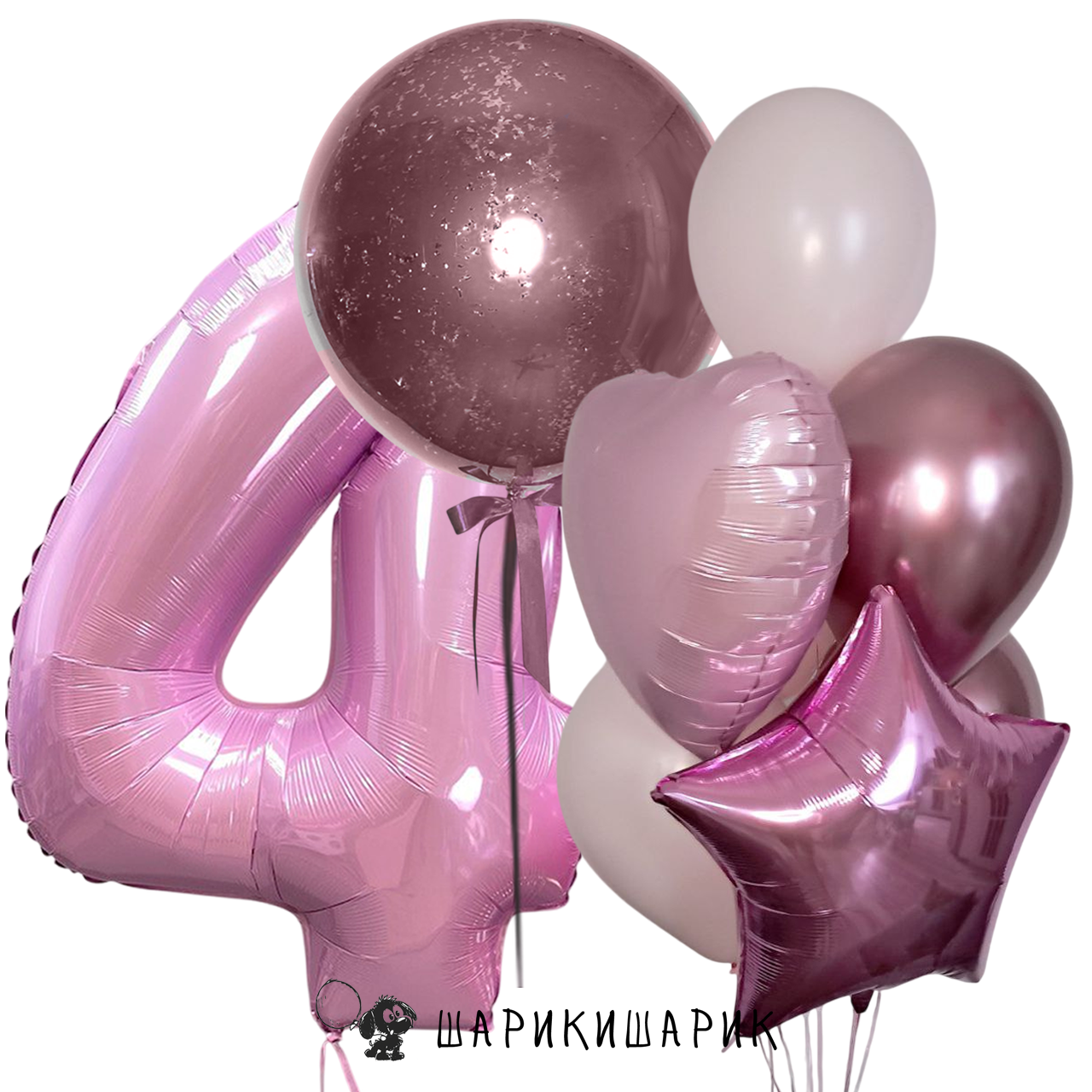 Набор из среднего фонтана с сердцем и звездой, шара Bubble (бабл) 18" и цифры "Розовый"