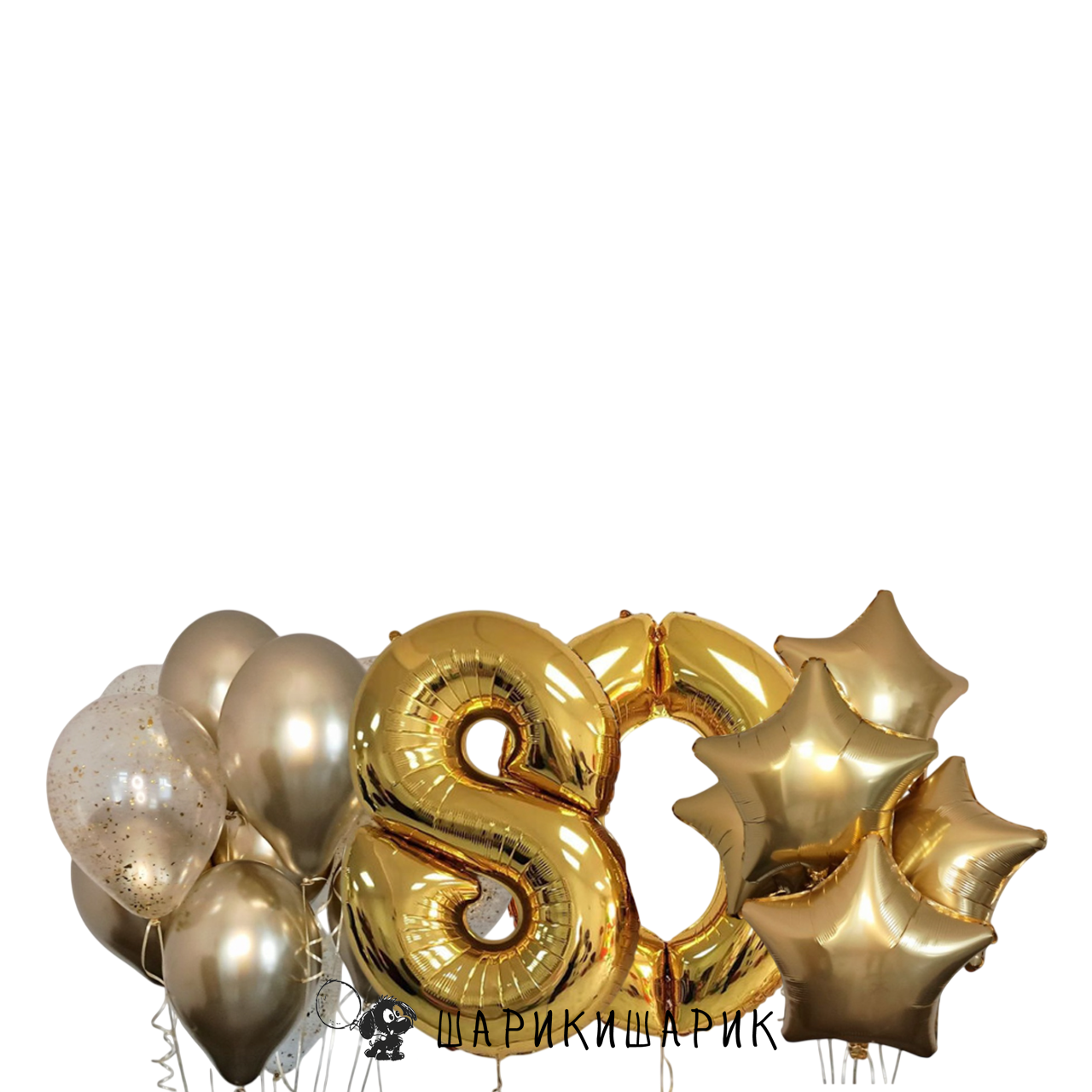 Набор из звёзд, связки шаров, золотых цифр "Золото с блёстками"