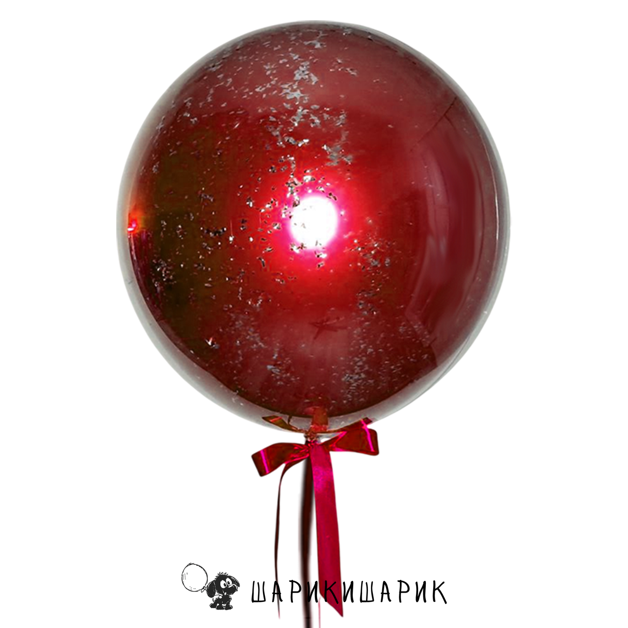 Шар Bubble (бабл) 18" с конфетти в технике duble stuf "Красное серебро"