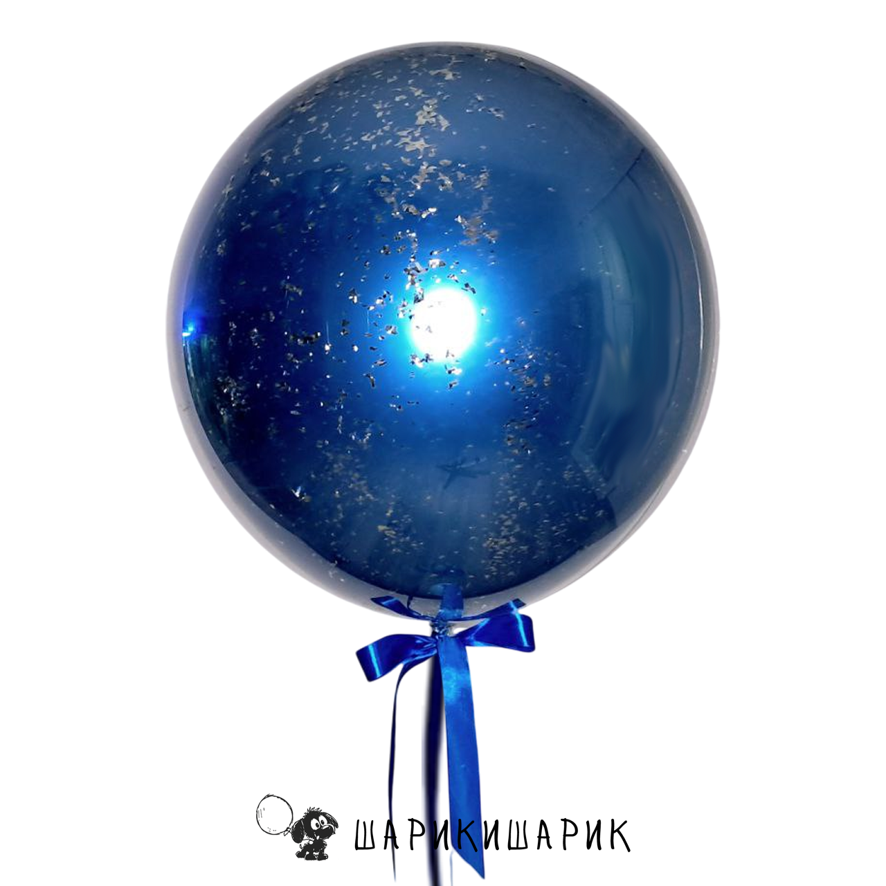 Шар Bubble (бабл) 18" с конфетти в технике duble stuf "Серебряно-синий"