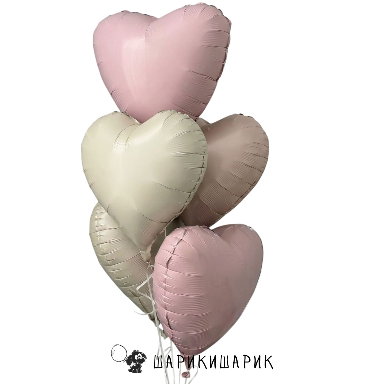Связка из фольгированных сердец "Бежево-розовый"