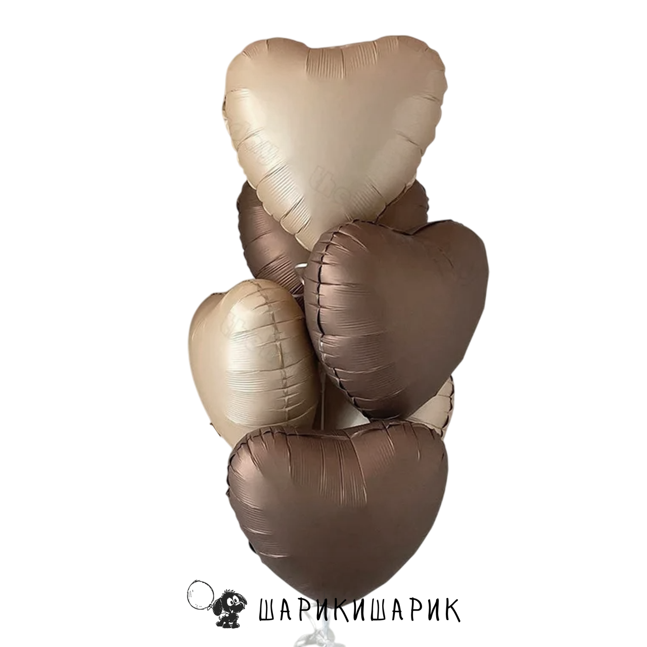 Связка из фольгированных сердец "Кремово-шоколадный"